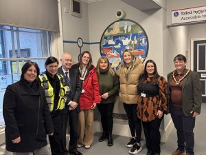 Conwy Valley and North Wales Coast Community Rail Partnership, in collaboration with Flintshire County Council’s Croes Atti Day Centre and Transport for Wales, is proud to unveil the Memories of Flint exhibition in the waiting room at Flint railway station.